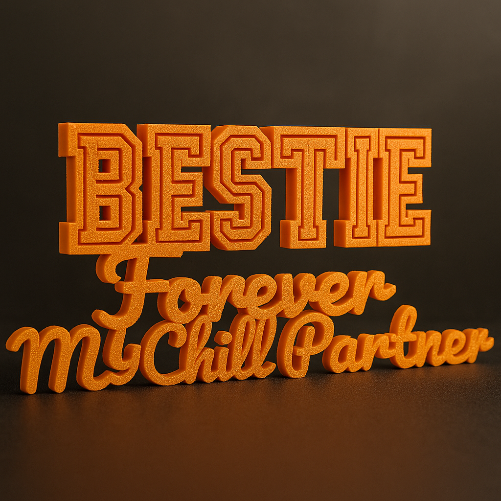 Minimal, elegant, and meaningful – this 3D-printed “Bestie Forever My Chill Partner” tabletop decor adds a peaceful charm to any space. Crafted using premium-quality biodegradable thermoplastic obtained from renewable resources like corn starch, sugarcane etc (PLA), it’s perfect for home styling or heartfelt gifting.